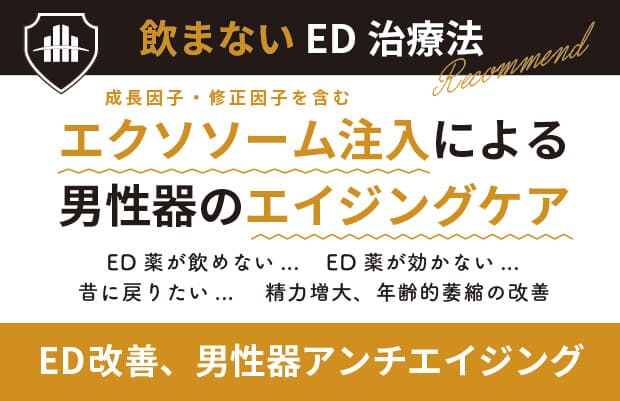 当クリニックでは、エクソソームを使用した「飲まないED治療」を推奨しています。